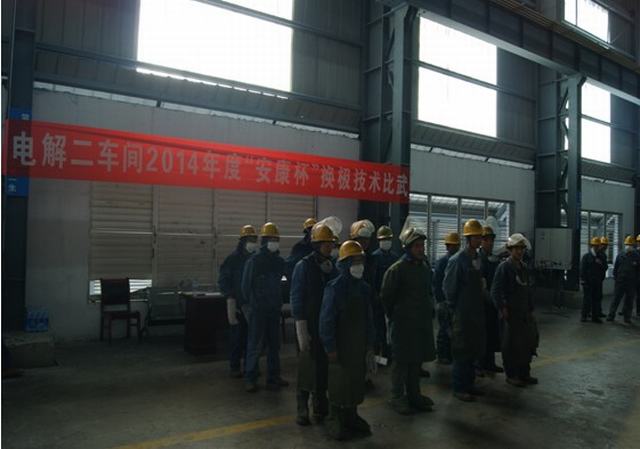 青海物產工業(yè)投資有限公司全面啟動"安康杯"競賽活動。2014年4月15日上午電解二車間舉行了"安康杯"換極技術比武大賽。公司副總經(jīng)理張允忠,副總經(jīng)理、工會主席張秉瑜,總經(jīng)理助理秦建峰出席了開幕式。