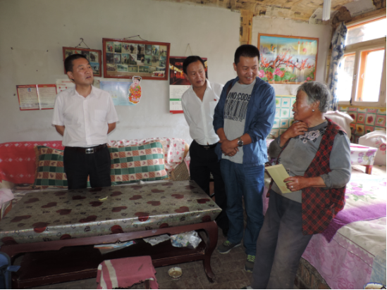 朝物開(kāi)投公司副總經(jīng)理喇軍民、物產(chǎn)汽貿(mào)公司董事長(zhǎng)張建軍、機(jī)電市場(chǎng)公司市場(chǎng)部部長(zhǎng)王功明以"三幫一"的方式結(jié)對(duì)幫扶絕對(duì)困難戶楊生福。楊生福,男,藏族,61歲,家中三口人,本人肢體四級(jí)殘疾,妻子四級(jí)殘疾(羅鍋),兒子30歲,現(xiàn)安排在當(dāng)?shù)貜氖伦o(hù)林員工作,未結(jié)婚,住房為土木結(jié)構(gòu),此次結(jié)對(duì)幫扶為其送去了600元慰問(wèn)金。