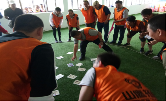 通過(guò)系列游戲?qū)胪卣估砟?,同時(shí)建立團(tuán)隊(duì)、選舉隊(duì)長(zhǎng)、編隊(duì)歌、取隊(duì)名、定隊(duì)訓(xùn)、繪隊(duì)旗、做團(tuán)隊(duì)雕塑,做文化展示。隊(duì)員在精神整裝和團(tuán)隊(duì)建立時(shí)充滿信心和激情的表現(xiàn),體現(xiàn)出青海物產(chǎn)汽貿(mào)團(tuán)隊(duì)已整裝待發(fā)、破冰起航。