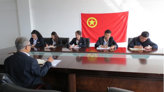 支部全體團(tuán)員和青年職工在團(tuán)旗下齊唱團(tuán)歌、重溫入團(tuán)宣誓,用洪亮的聲音再次堅(jiān)定了"不忘初心跟黨走、青春建功新時(shí)代"的青春誓言,拉開(kāi)了主題團(tuán)日活動(dòng)的序幕。在濃厚的氛圍中,更加激發(fā)了團(tuán)員青年的愛(ài)國(guó)之情,強(qiáng)化了愛(ài)國(guó)之志。