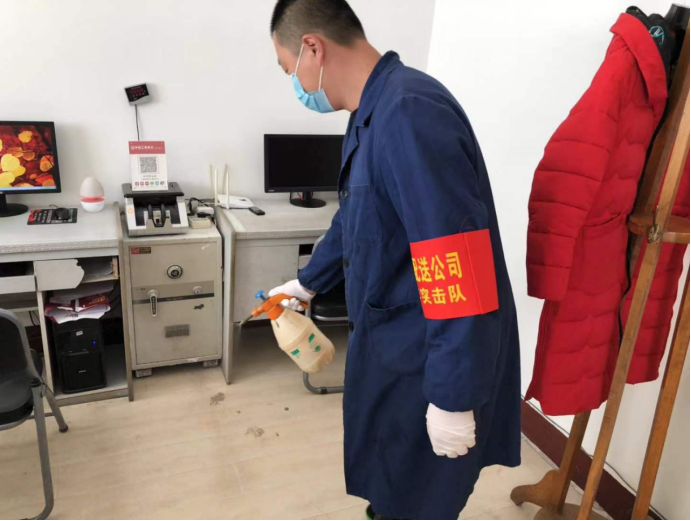 物產(chǎn)配送公司青年突擊隊抓好排查、有效防控,對公司19名團(tuán)員青年外出情況(包含外出地點、航班車次、居住地點、身體狀況等)進(jìn)行精準(zhǔn)摸排,對在崗員工每日兩次體溫測量進(jìn)行詳細(xì)登記。按時對3000平米辦公場所和生產(chǎn)經(jīng)營區(qū)域每日定期清潔消毒工作,在奪取防控斗爭勝利中爭當(dāng)排頭兵!