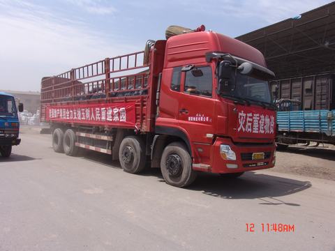 6月12日上午,由青海朝陽物流公司組織的首批五十輛裝滿災(zāi)后重建物資的重卡在省運(yùn)管局趙局長(zhǎng)的一聲號(hào)令下從朝陽物流市場(chǎng)駛出,直奔玉樹災(zāi)區(qū),為災(zāi)后重建貢獻(xiàn)力量。