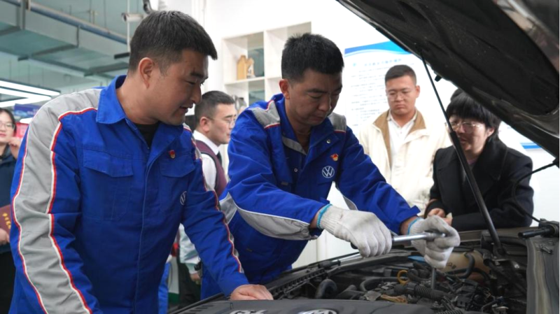 在汽車(chē)維修現(xiàn)場(chǎng),汽貿(mào)公司“售后服務(wù)黨員突擊隊(duì)”為交通運(yùn)輸學(xué)院老師的車(chē)輛做了全方位、專(zhuān)業(yè)的汽車(chē)保養(yǎng)售后服務(wù)。一張“檢查安全維護(hù)十二項(xiàng)”的保修單就是公司開(kāi)展“上門(mén)服務(wù)”的“清單”,逐一列上了車(chē)輛維修保養(yǎng)的詳細(xì)內(nèi)容和對(duì)客戶(hù)的承諾,還幫助客戶(hù)將以后用車(chē)中的注意事項(xiàng)做了全面梳理。由于這次服務(wù)對(duì)象,都有一定的汽車(chē)專(zhuān)業(yè)性知識(shí)儲(chǔ)備,所以在邊做維修服務(wù)的同時(shí),工匠們與老師們交流了各品牌車(chē)輛的保養(yǎng)、檢測(cè)、改裝等方面的內(nèi)容,對(duì)今后的工作方向有了新的思考。
