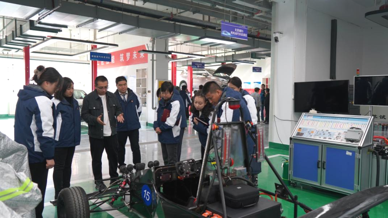 在參觀比亞迪E5純電動(dòng)車(chē)實(shí)訓(xùn)區(qū)時(shí),大家看到了學(xué)院2023年全國(guó)行業(yè)職業(yè)技能大賽二等獎(jiǎng)作品的技術(shù)“含金量”,饒有興趣地了解了繪圖-備材-制作-成型的具體過(guò)程,以及對(duì)轉(zhuǎn)動(dòng)、逃生、行駛、焊接、拆裝、車(chē)架與車(chē)身的測(cè)試。高校的科研成果凝聚了工匠精神傳承和“惟專(zhuān)惟精、匠人匠心”的人才培養(yǎng)理念,在提升職業(yè)道德修養(yǎng)、增強(qiáng)專(zhuān)業(yè)技術(shù)能力、發(fā)展創(chuàng)新創(chuàng)業(yè)能力等方面全面融入了工匠精神培育。在場(chǎng)的黨員仔細(xì)觀摩,向創(chuàng)作單位投以敬佩的眼光。雙方在“工匠精神是培養(yǎng)高素質(zhì)技術(shù)技能人才的目標(biāo)導(dǎo)向,是推動(dòng)產(chǎn)教融合、校企合作的重要實(shí)踐途徑”達(dá)成共識(shí)。
