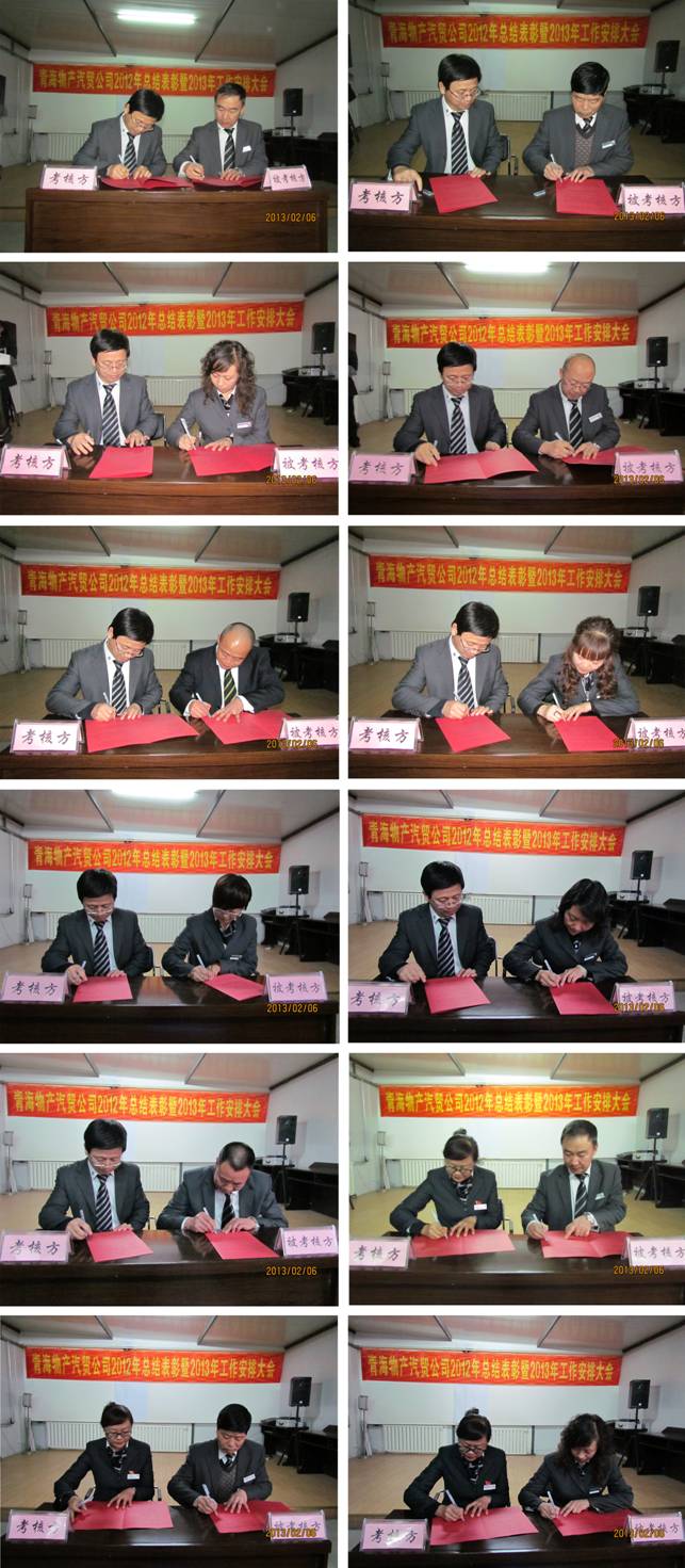 最后,公司總經(jīng)理與各部門簽訂了《2013年度生產(chǎn)經(jīng)營目標責任書》,支部書記與黨員、非黨員部門負責人簽訂了《廉政建設(shè)責任書》。